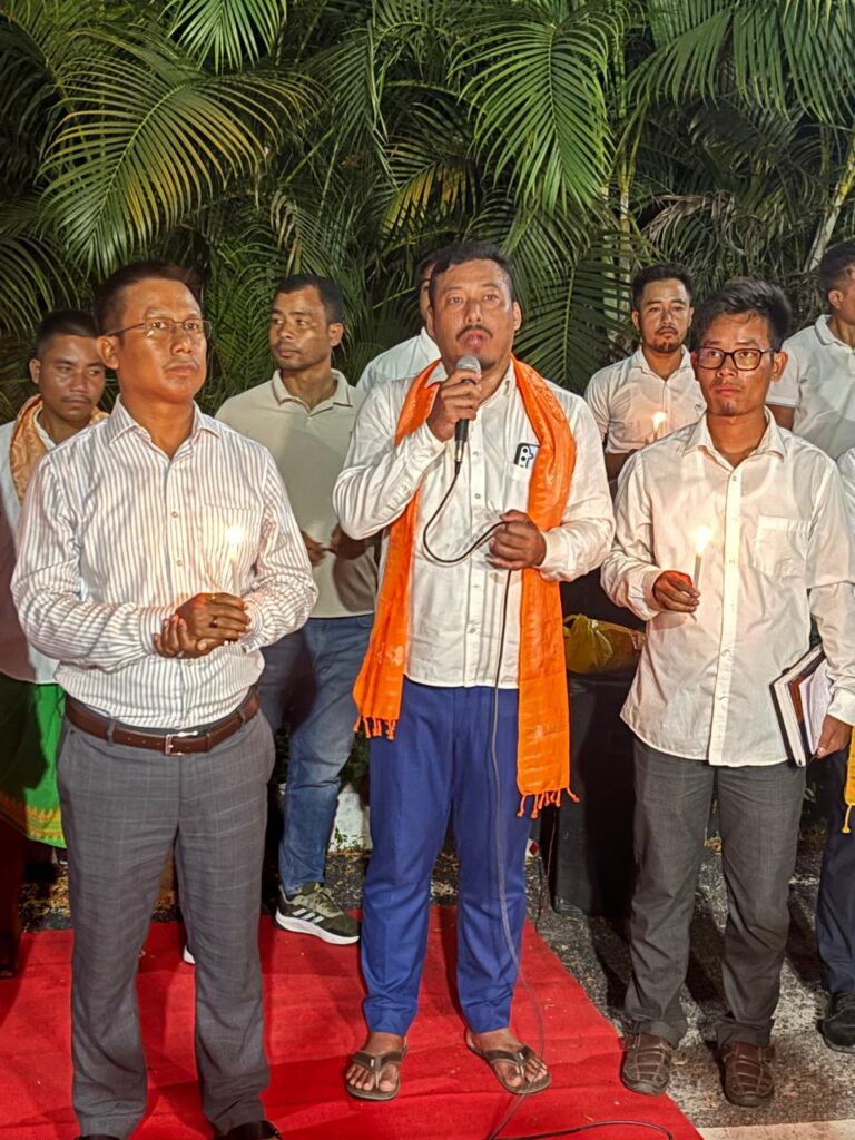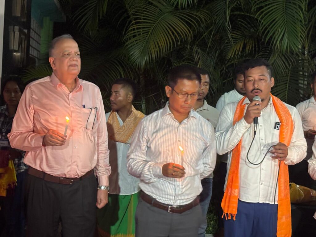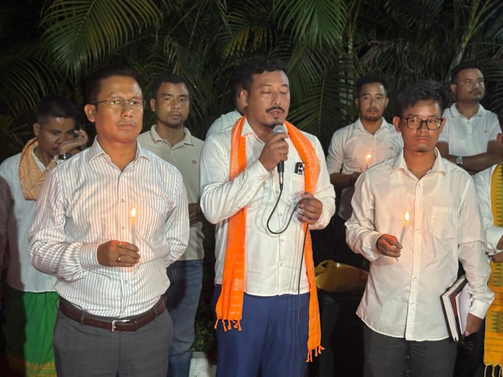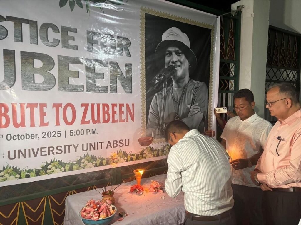 A condolence and tribute programme was organized on Friday evening by ABSU at the main entrance of Bodoland University, Debargaon in Kokrajhar. ABSU President Dipen Boro lit the ceremonial lamp before Zubeen Garg’s portrait and paid homage to the artist, calling his untimely demise “tragic and heartbreaking.”