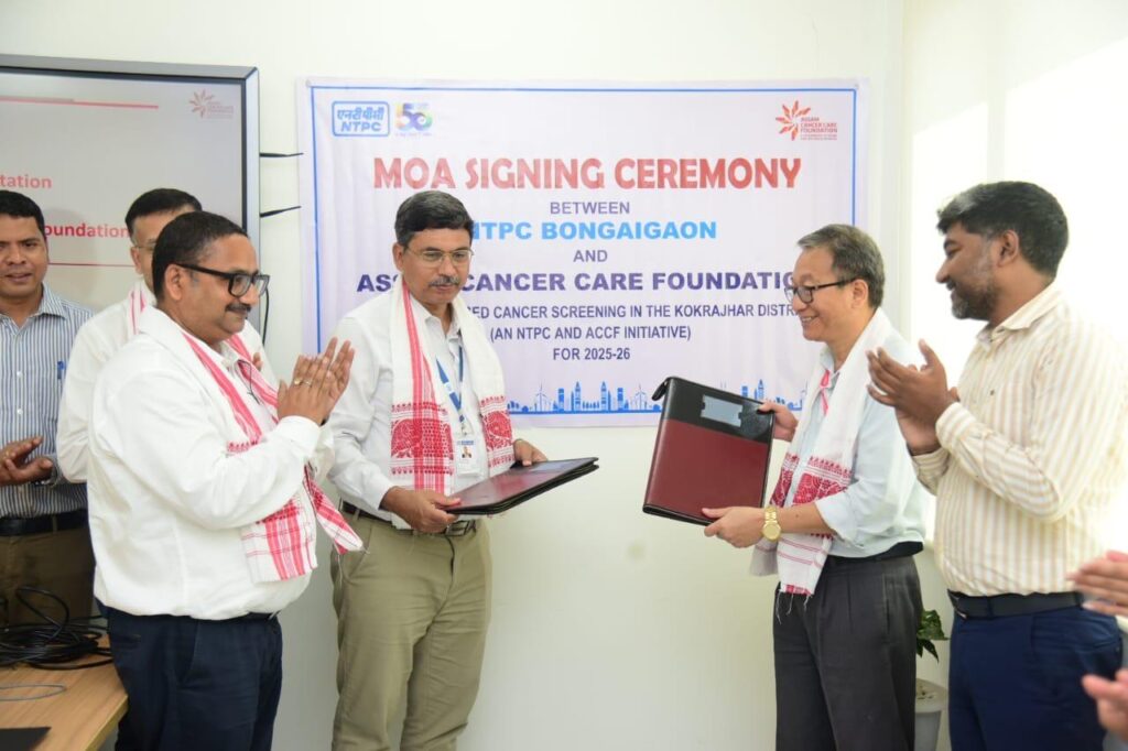 KOKRAJHAR, OCT 19:  In a major step towards strengthening healthcare in the Bodoland region, NTPC Bongaigaon under its Corporate Social Responsibility (CSR) initiatives has signed a Memorandum of Agreement (MoA) with the Assam Cancer Care Foundation (ACCF) for implementing a Community-Based Cancer Screening Project in Kokrajhar district. The ₹33 lakh project aims to provide preventive and diagnostic cancer care to around 81,000 people across various villages, ensuring last-mile outreach through four Block Primary Health Centres (BPHCs) and approximately 80 Health and Wellness Centres (HWCs). The initiative will focus on early detection of oral, breast, and cervical cancers, conduct awareness and sensitisation programmes, and offer home-based palliative care for patients in need. The MoA signing ceremony, held at ACCF campus on 18th October 2025, was led by Shri Arnab Maitra, Head of Project, NTPC Bongaigaon.